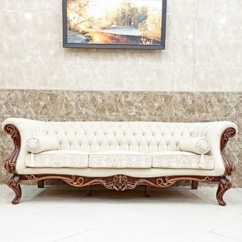 یکی دیگر از مدلهای به شدت معروف، مبل کلاسیک کویین فرانسوی است که سر و صدای بسیاری در بازار پیدا کرده است و مردم عاشق خرید آن شدهاند. مدلی که ترکیبی از مدلهای فرانسوی و کلاسیک قدیمی است و طراحی چوب زیبا و خاصی در قسمت تاج و گوشوارههای این مدل وجود دارد.