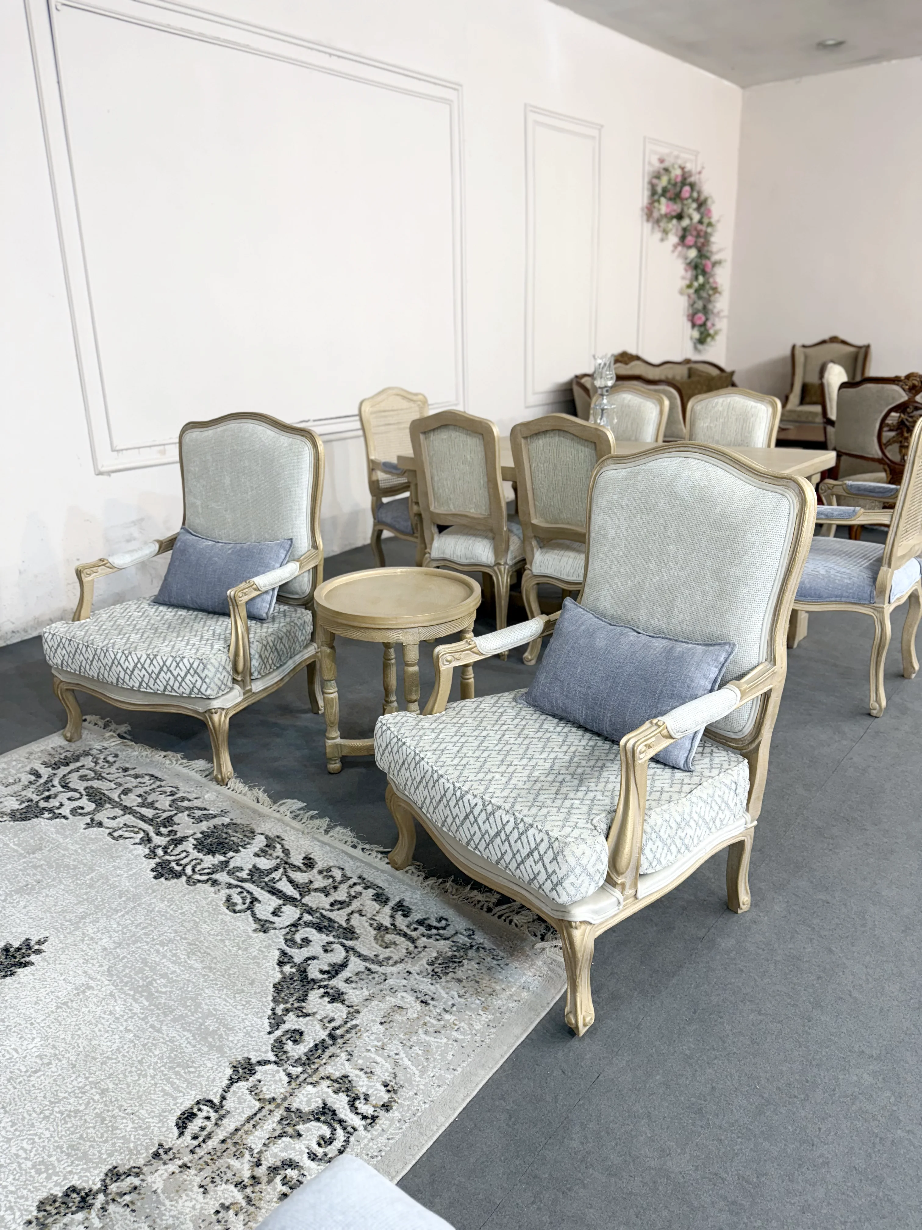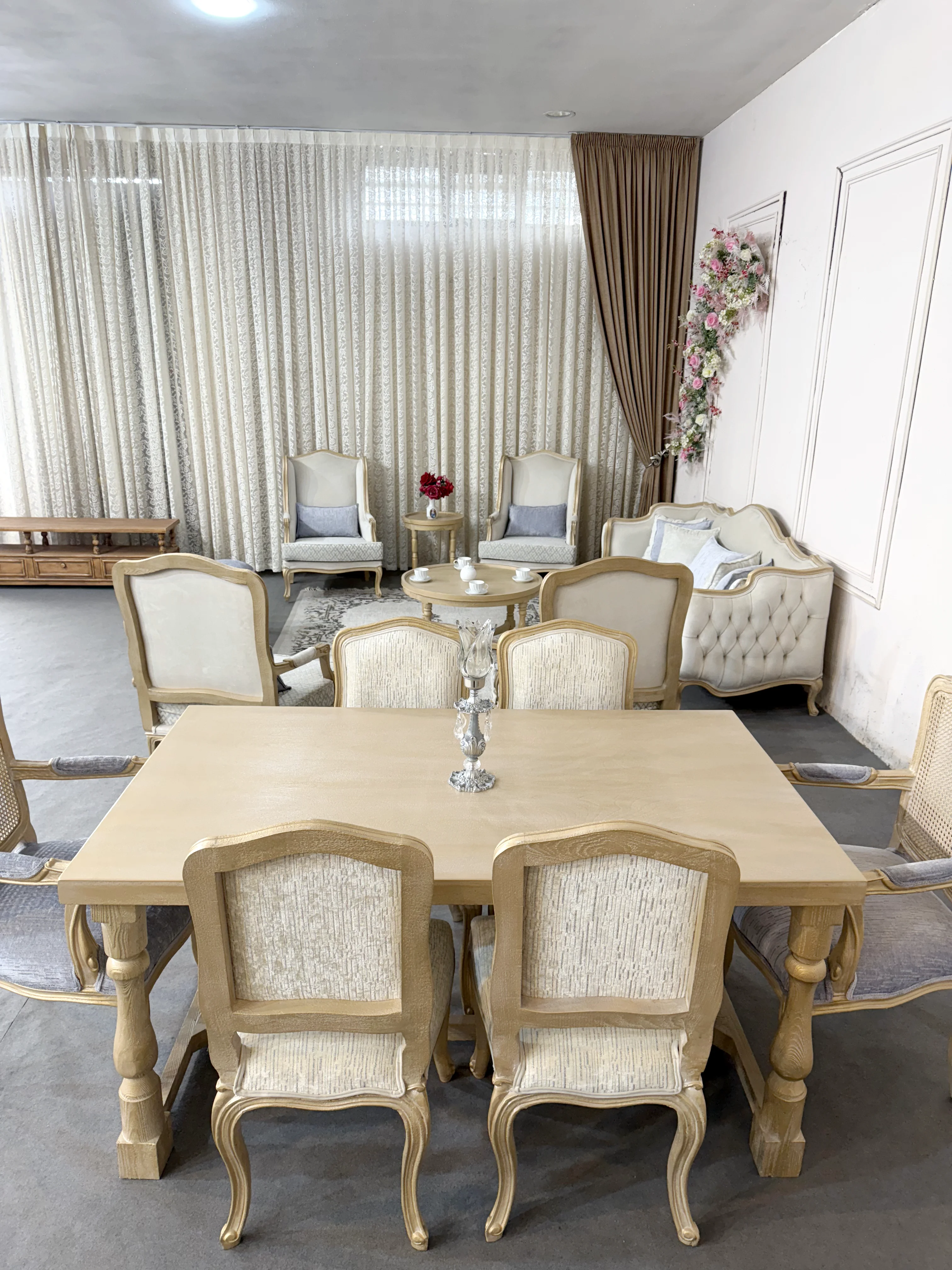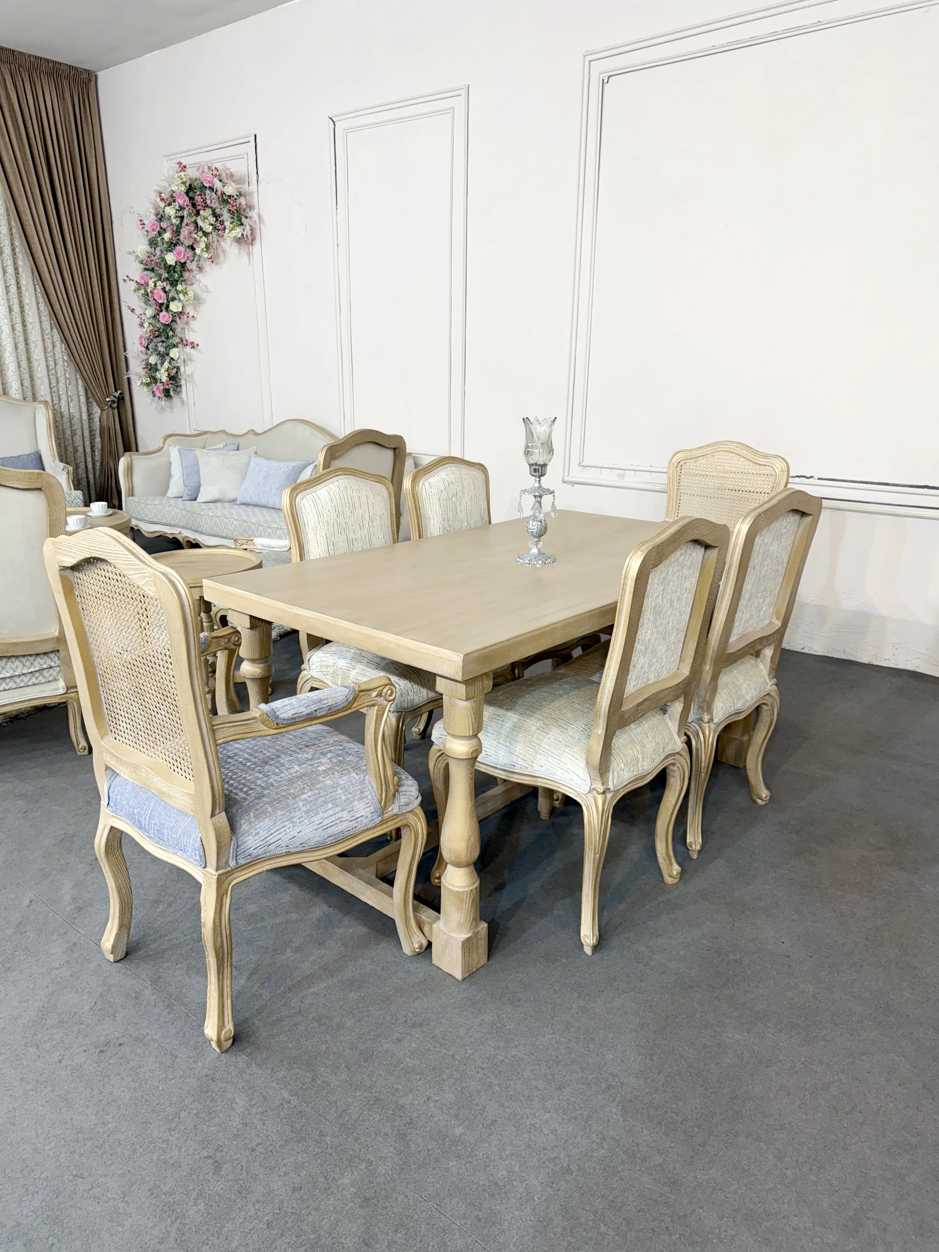 برای آشنایی بیشتر شما با مبل کویین فرانسوی باید بگوییم این مدل هفت نفره است و دارای ست میز ناهار خوری (6، 4، 8، 10) نفره هم هست که تعداد آن ها قابل تغییر است. مدلهای فرانسوی دارای ترکیبهای متفاوتی هستند (چند مدل صندلی، مبل، کاناپه) که انتخاب ترکیب و ست کردن آنها با نظر مشتریان محترم خواهد بود.